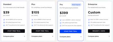 1- Standard: ~$39/month ($29/month billed annually) for up to $50K in annual sales.