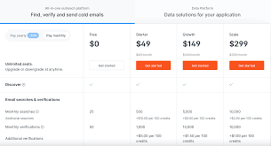 2- Growth ($149): 5,000 searches, 10,000 verifications/month, 10+ team members.