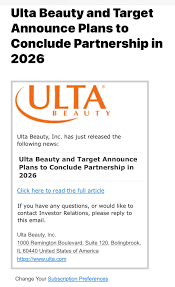 1- By August 2026, Ulta’s mini-stores will be gone from Target, though Target will continue selling some Ulta products online and in-store until then.